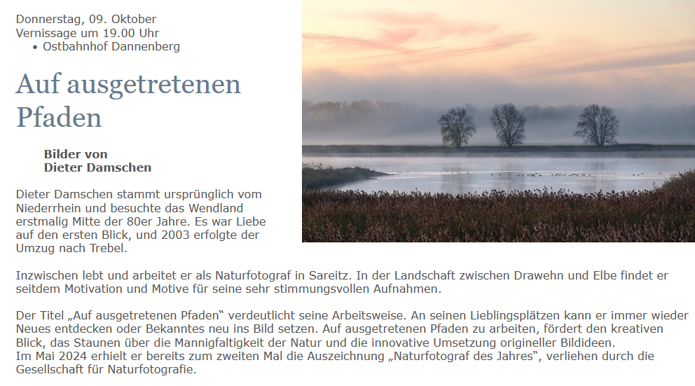 Aussstellung vom 22.08.2025 bis 06.10.2025 im Bahnhof Dannenberg